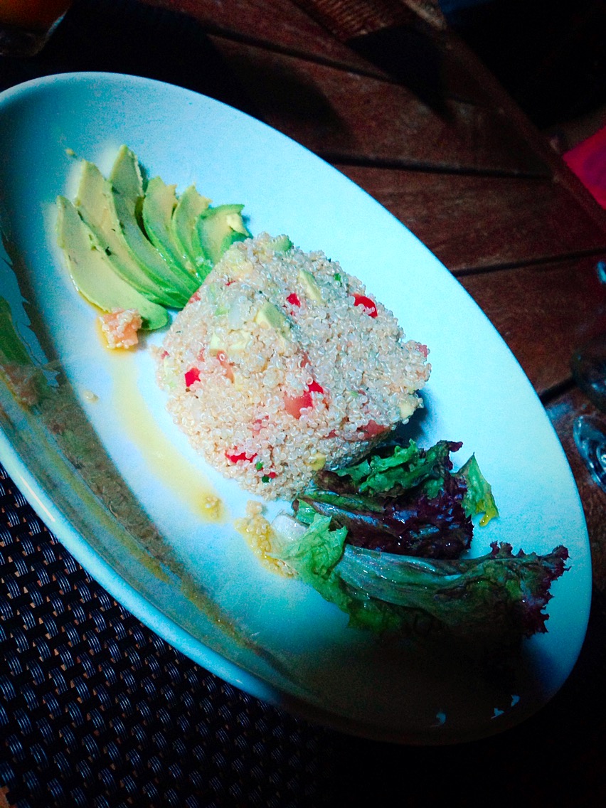 This salad was so tasty! It also had spinach, lettuce, tomatoes and walnuts with honey and mustard dressing to top it off.